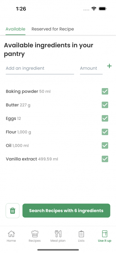 Introducing our Use It Up feature - the ultimate solution to making the most out of the ingredients you already have! With our Use It Up feature, you can easily add the ingredients you have in your pantry to your account and find recipes that use up those ingredients.